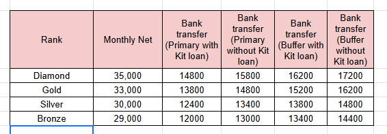 | Rs 400 to 600 is transferred to partner's easy order wallet to order kit items per cycle. Note: It is not a deduction.The amount is transferred to Easy Order Wallet, a separate account visible on partner's app. | |||||